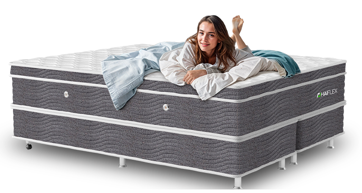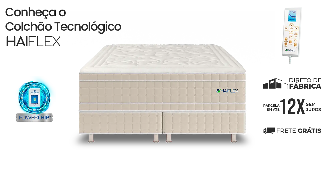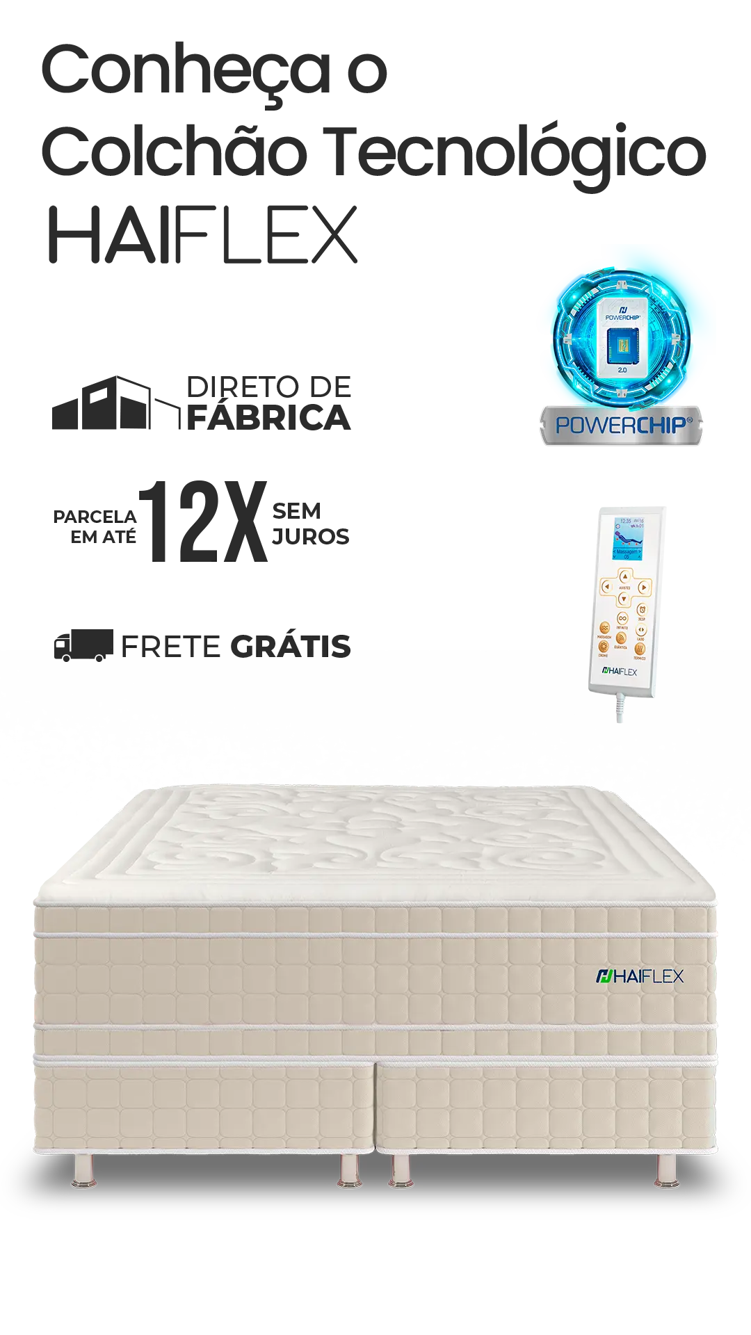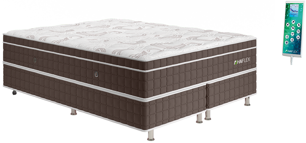 O Colchão Haiflex possui um moderno sistema de vibro terapia com massagens de alta rotação que atuam nos ombros, lombar, coxas e panturrilhas, proporcionando conforto, relaxamento muscular, alivio do estresse, da fadiga e proporciona a melhor noite de sono da sua vida!