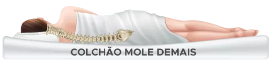 O colchão mole faz com que o corpo afunde, o que causa desvio na postura e dores musculares.